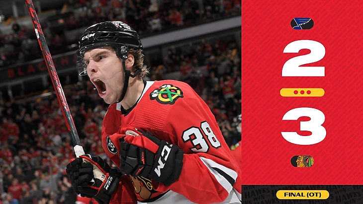 "Чикаго Блэк Хоукс"-"Сент-Луис Блюз" 3:2 (ОТ).Алекс ДеБринкат в овертайме принёс победу хозяевам.Сет Джонс отдал 2 результативные передачи,Кевин Ланкинен отразил 23 броска.У гостей Павел Бучневич набрал 2 очка (1+1),Иван Барбашев забросил одну шайбу.Во втором периоде Джейк МакКейб подрался с Брейденом Шенном.