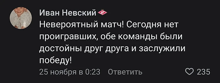 Худший матч: поражение от «Спартака» со счётом 𝟐:𝟓 (𝟏𝟖.𝟏𝟏). Хороший первый период, но больше мы той команды не видели. Красно-белые победили по делу.