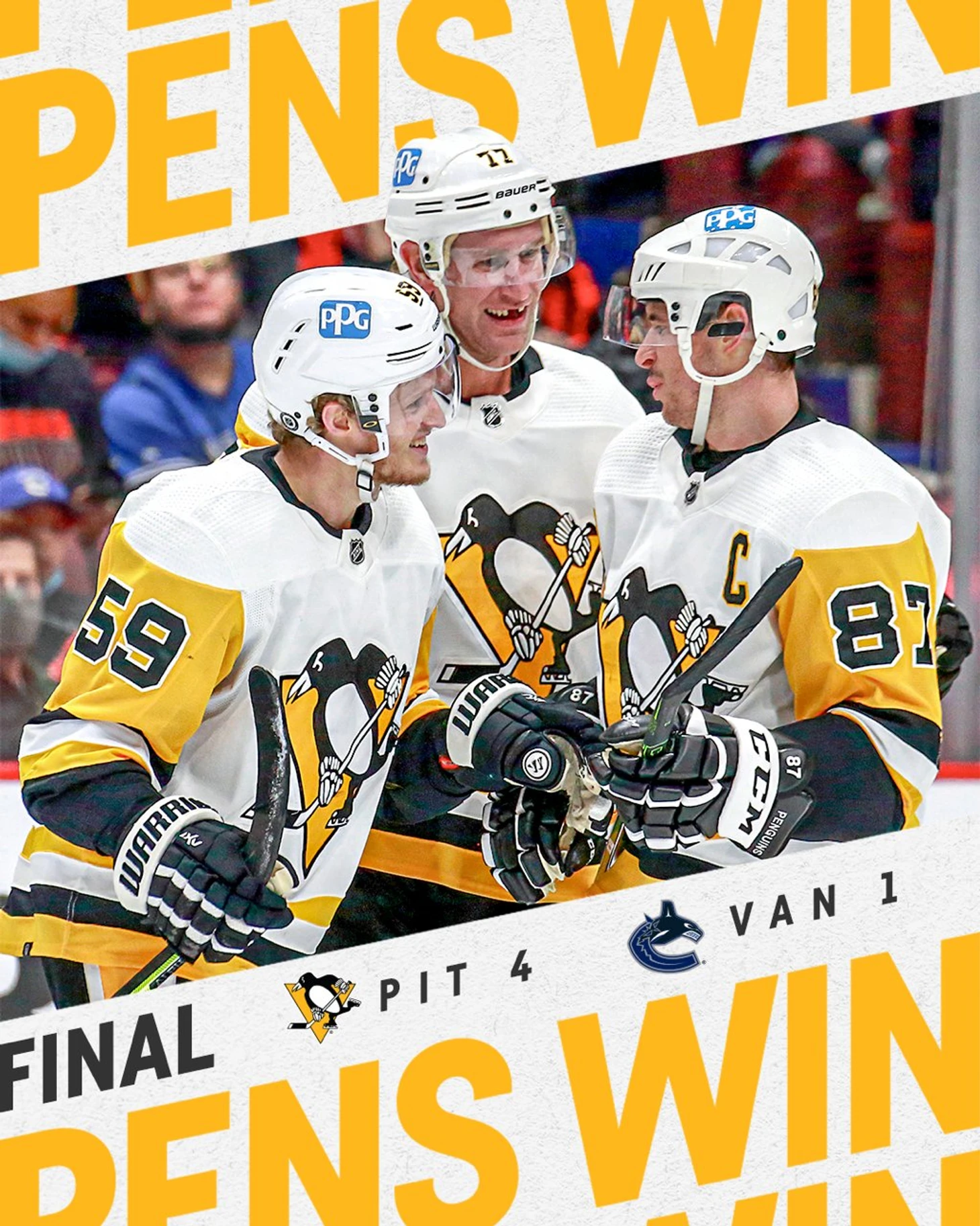 "Ванкувер Кэнакс"-"Питтсбург Пингвинз" 1:4.Джейк Гюнтцель набрал 4 очка (3+1),Крис Летанг отдал 3 результативные передачи,Сидни Кросби набрал 3 очка (1+2),Тристан Джарри отразил 22 броска.У хозяев Василий Подколзин забросил одну шайбу.