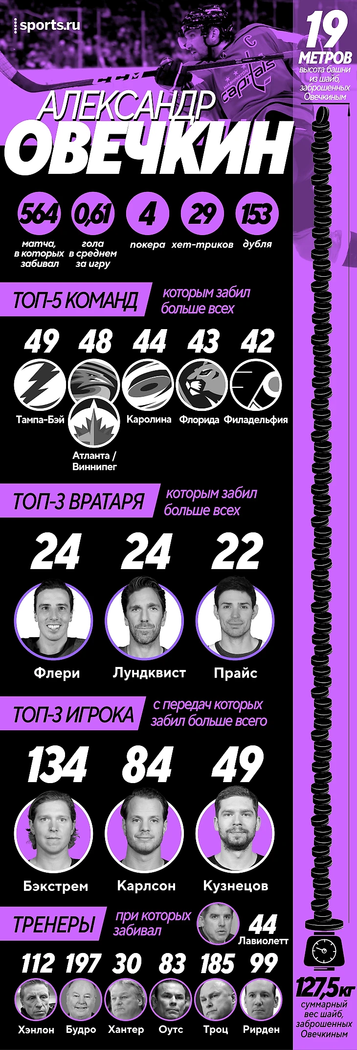 750 шайб Овечкина: когда и кому забивал, кто ему помогал