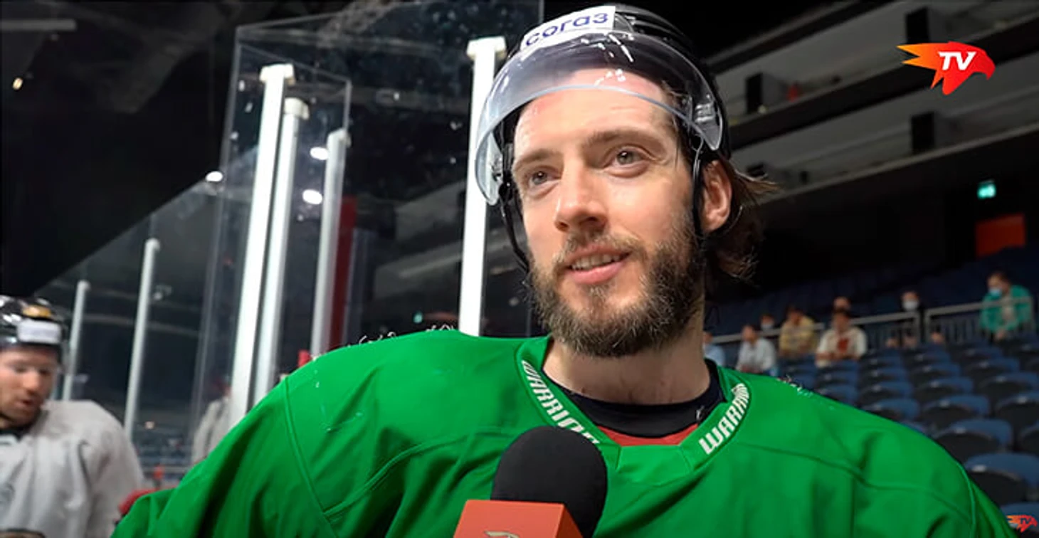 Если не видели – обязательно посмотрите. Необходимый контекст: «Авангард» проводил матч с «Ак Барсом» в Дубае – и интервью брали после первой тренировки в Эмиратах.