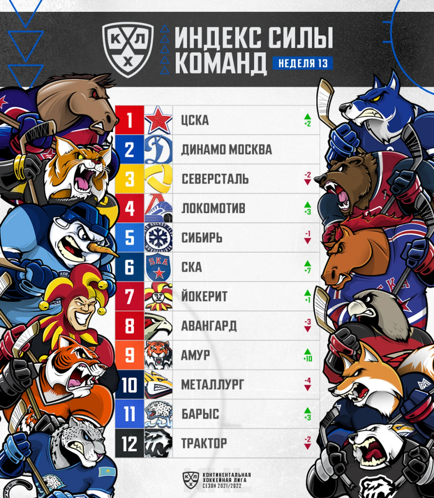 KHL.ru рассказывает о самых «горячих» командах по итогам 13-й недели регулярного чемпионата.