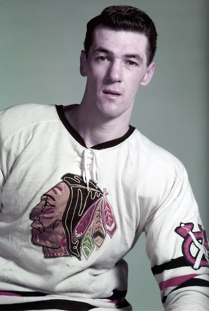 Начну с представленного фото. Я должен был поискать на просторах интернета иную фотографию Пьера Пайлота, дабы не вводить Вас в заблуждение. Дело в том, что капитаном "Блэк Хоукс" в чемпионском сезоне был Эд Литценбергер, а Пайлот стал кэпом со следующего сезона - 61-62. Но фотография уникальна тем, что стикер "С" у Пьера нашит на правое плечо. Это большая редкость ("Детройт" - исключение), я даже сначала подумал, что фото зеркальное, но нет, и я не удержался - впаял фотку в статью.