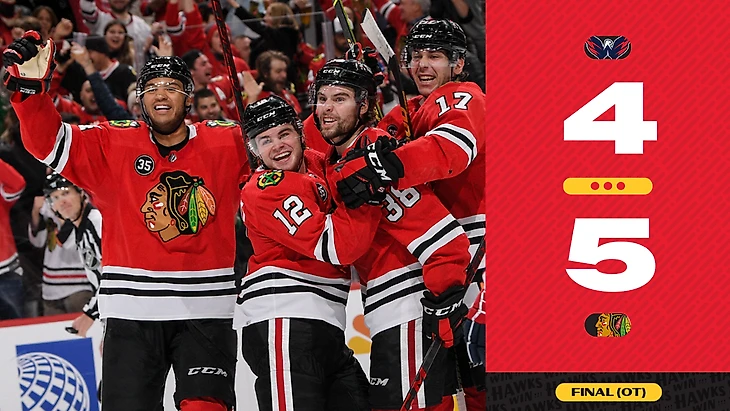 "Чикаго Блэк Хоукс"-"Вашингтон Кэпиталз" 5:4 (ОТ).Калеб Джонс в овертайме принёс победу хозяевам.Алекс ДеБринкат забросил 2 шайбы,Калеб Джонс набрал 2 очка (1+1),Брендон Хагель с Кирби Дачем и Патриком Кейном отдали по 2 результативные передачи,Марк-Андре Флери отразил 42 броска.У гостей Александр Овечкин и Конор Шири набрали по 2 очка (1+1),Ти-Джей Оши отдал 2 результативные передачи.