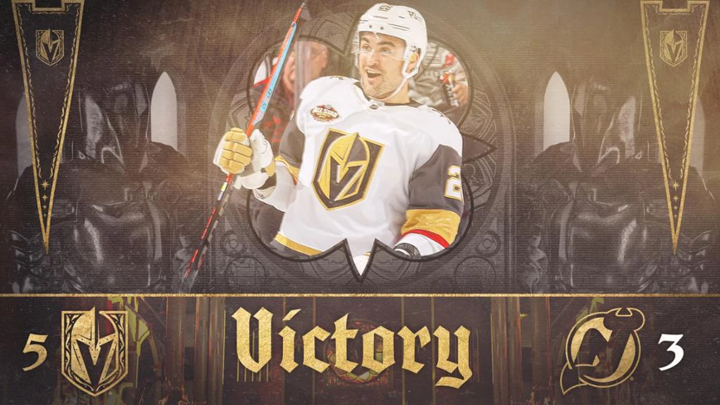 "Нью-Джерси Дэвлз"-"Вегас Голден Найтс" 3:5.Вильям Карлссон с Джонатаном Маршессо и Диланом Кольяном набрали по 2 очка (1+1),Райли Смит отдал 2 результативные передачи,Робин Ленер отразил 23 броска.У хозяев Томаш Татар набрал 2 очка (1+1).В конце матча Мэйсон Гиртсен и Алекс Пьетранджело получили по 10 минут штрафа.