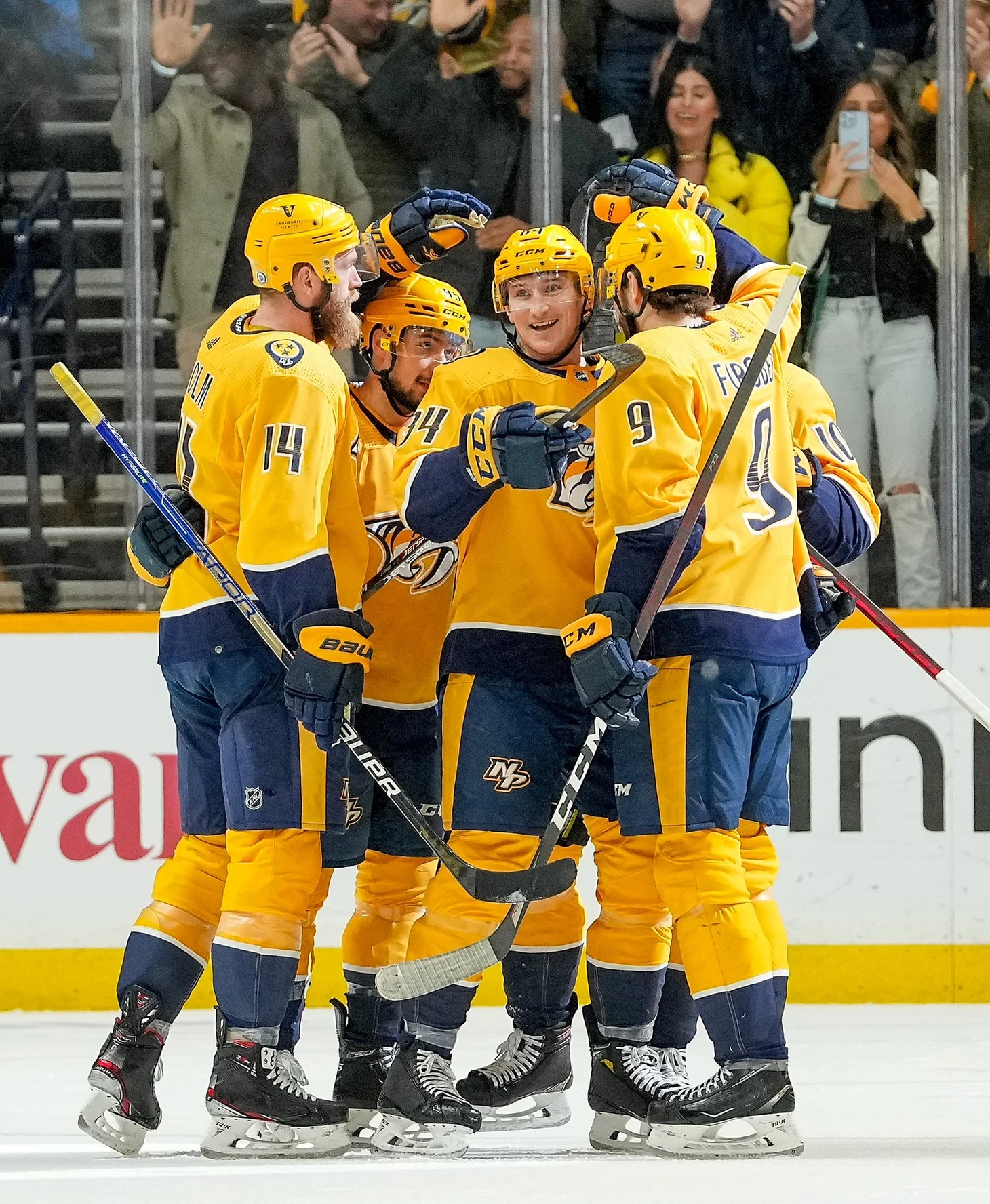 "Нэшвилл Пердаторз"-"Колорадо Эвеланш" 5:2.Филип Форсберг набрал 3 очка (2+1),Колтон Сиссонс отдал 3 результативные передачи,Таннер Жано набрал 2 очка (1+1),Александр Карье отдал 2 результативные передачи,Юсе Сарос отразил 24 броска.У гостей Микко Рантанен набрал 2 очка (1+1),Валерий Ничушкин забросил одну шайбу."Хищники" выиграли 6 матч подряд.