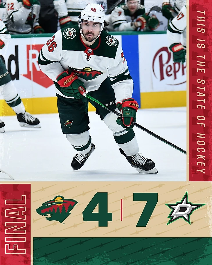 "Даллас Старз"-"Миннесота Уайлд" 7:4.Джейми Бенн и Миро Хейсканен набрали по 2 очка (1+1),Джейсон Робертсон и Денис Гурьянов отдали по 2 результативные передачи,Джэйк Эттинджер отразил 10 бросков.У гостей Кирилл Капризов набрал 3 очка (1+2),Кевин Фиала забросил 2 шайбы,Райан Хартман набрал 2 очка (1+1),Матс Цуккарелло отдал 2 результативные передачи.