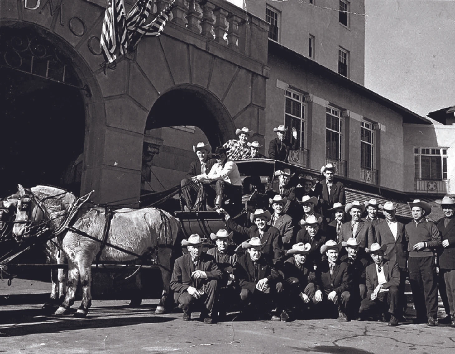 Январь 1959 года. Денвер, Колорадо. Сборная СССР во время турне по США. Первый ряд: Николай Сологубов, неизвестный, Евгений Грошев, Виктор Пряжников, Константин Локтев, Юрий Крылов, неизвестный. Над первым рядом склонились Николай Снетков и Эдуард Иванов. Второй ряд: Юрий Пантюхов (крайний слева), Виктор Якушев (третий слева), Игорь Деконский (пятый слева), Владимир Егоров (второй справа). На козлах Вениамин Александров (в белой шляпе). На крыше: Алексей Гурышев, Юрий Баулин и Евгений Ёркин. В экипаже: Дмитрий Уколов, Генрих Сидоренков и Иван Трегубов