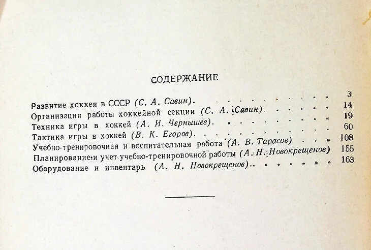 Один из первых советских учебников по хоккею с шайбой, вышедший в том же 1953 году, составили пятеро: Тарасов, Чернышев, Егоров, а также государственный тренер (была такая должность) Александр Никифорович Новокрещенов и видный спортивный функционер Сергей Александрович Савин, причем Егоров писал раздел «Тактика».