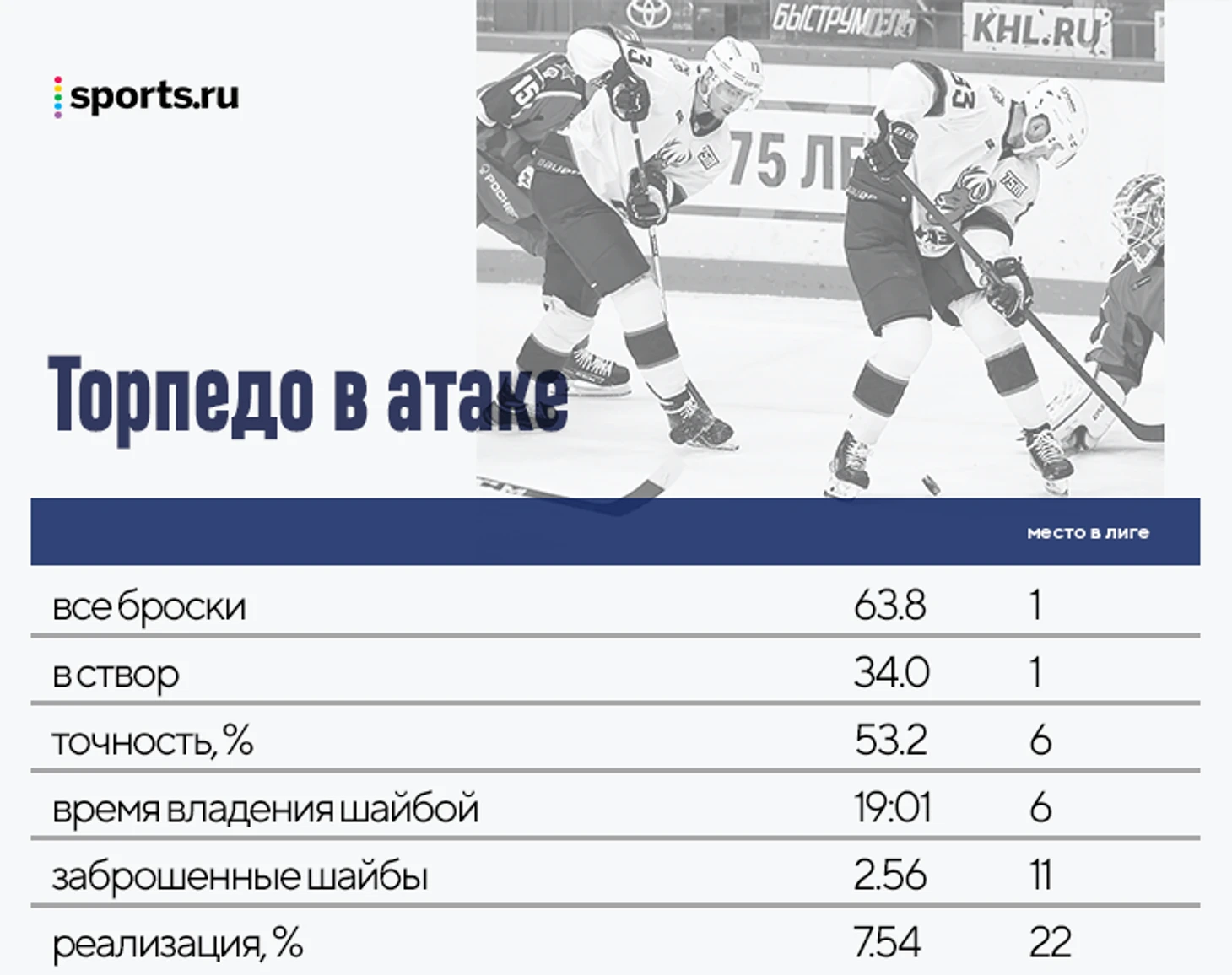 В 5 матчах первой половины декабря до перерыва «Торпедо» показало реализацию выше средних 9% по лиге. Пока это лишь небольшой отрезок, но по этому сезону даже такой результат стоит отметить. Если команде удастся продолжить в том же темпе, не растеряв имеющуюся надежность сзади, то с попаданием в восьмерку затруднений возникнуть не должно.