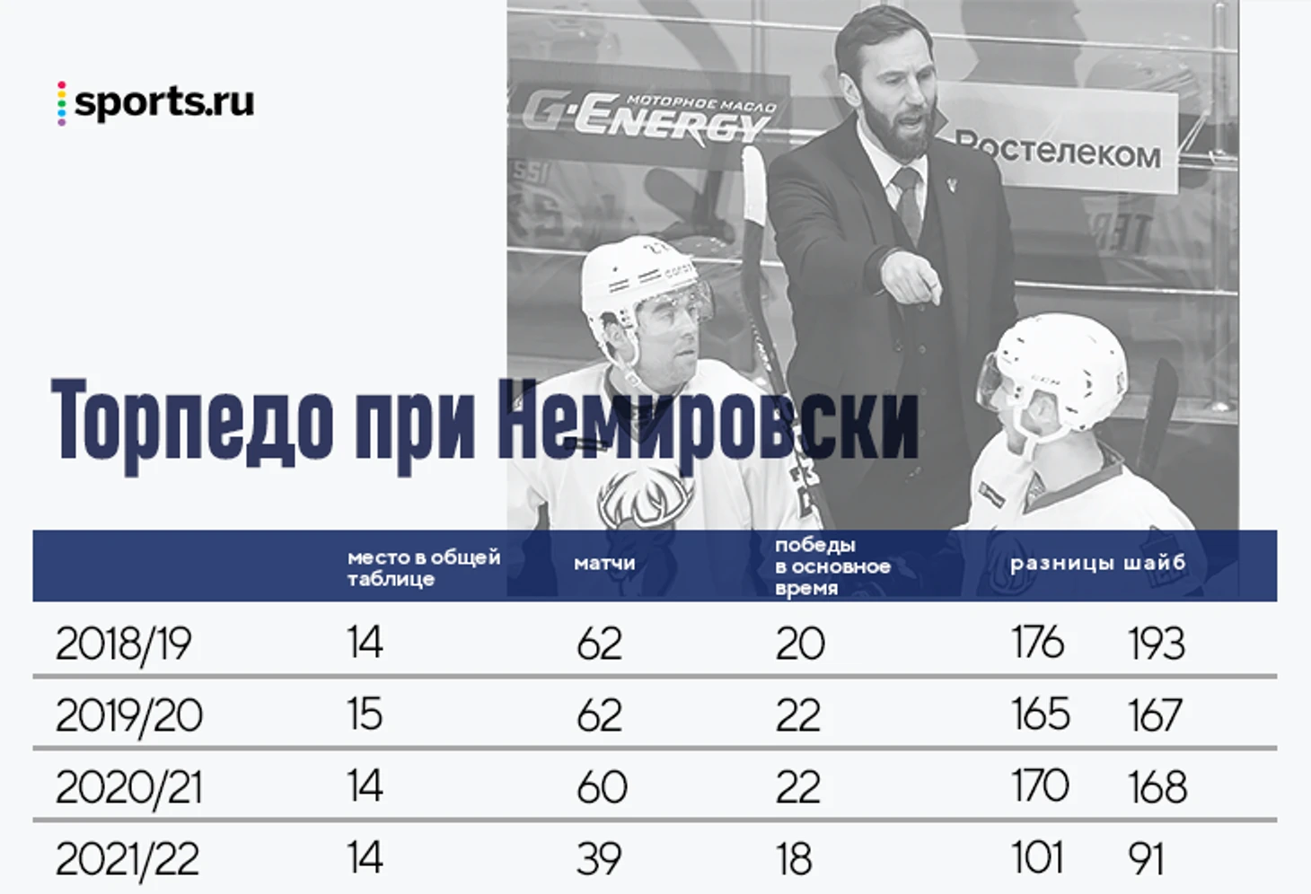 «Торпедо» при Дэвиде Немировски – интересный пример стабильности в КХЛ. Как бы руководство лиги ни кидало клуб из одной конференции в другую и обратно, нижегородцы постоянно цеплялись за середину таблицы, заползая в плей-офф. Даже перерыв на Евротур они встретили на своей любимой позиции.