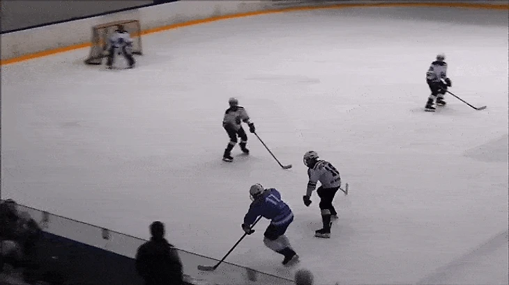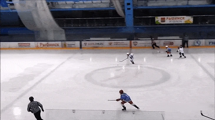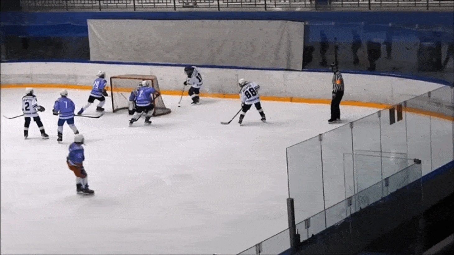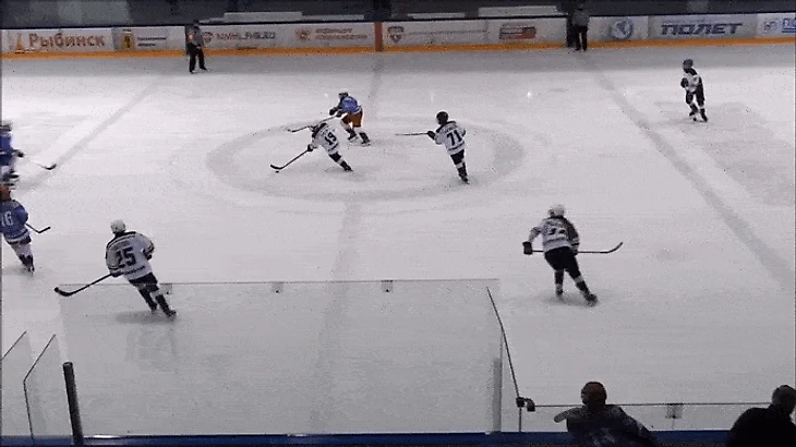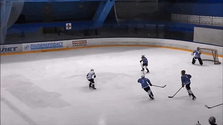 Ещё смена, и первое звено, пусть и случайно, но придумывает острую атаку с выводом на огневую позицию Жилкина – Миша попадает в защитника, Даня, казалось бы, добивает отскочивший к нему диск в пустой угол, однако кипер Жукова вновь подтаскивает свою команду.