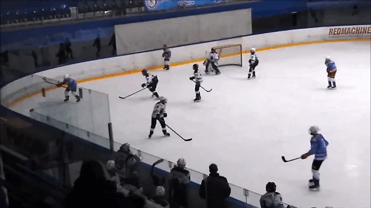 Данила Коннов. Наконец-то забил, имел ещё несколько неплохих моментов, но всё очень нежно. При таких габаритах, при хорошем катании так отвратительно работать кистями просто нельзя. Даню периодически обкрадывали ребята, которые меньше его вдвое, и клюшка у них такого же размера, как у него была пять лет назад. Но любое, даже самое лёгкое сопротивление сбивает его с пути истинного. Не расставайся с кистевым эспандером, работай над дриблингом с деревянным мячиком, носи маму на руках по лестнице, наконец.