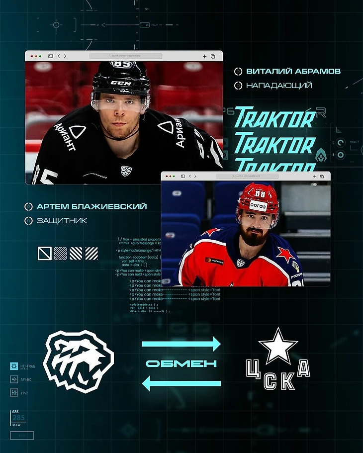 Неплохую сделку провернули "Трактор" и "ЦСКА". Всё произошло очень неожиданно. Челябинцы возвращали из Северной Америки Виталия Абрамова и связывали с ним большие надежды, а в итоге отправили в Москву, получив взамен защитника Артёма Блажиевского. Тяжело сказать, кто выиграл от сделки. Нужно время, чтобы посмотреть и проанализировать игру обоих в новых командах. Но на первый взгляд для армейцев приход молодого нападающего Абрамова видится более перспективным вариантом.