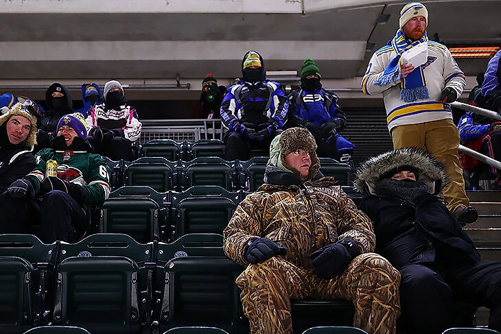 Огромный стадион, матч на открытом воздухе – «Зимняя классика» это, конечно, в первую очередь, классная атмосфера. Более того, такие игры доставляют мало комфорта для зрителей – например, по ходу матча «Сент-Луиса» и «Миннесоты» температура опустилась до минус 25 ниже нуля.