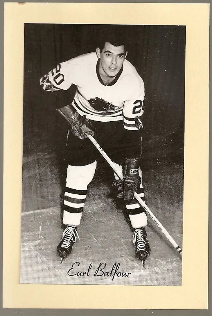 Мюррей забивал немного (конечно, в сравнении с Бобби Халлом и Стэном Микитой любой иной показатель не будет впечатлять). Эрл забивал ещё меньше. Он был экспертом в другой области. Он десантировался на площадку, когда команда оставалась в меньшинстве. Вот тут он был непревзойдённым докой. Засушить численное неравенство - это к нему. Эрл попал в "Блэк Хоукс" примерно так же, как и некоторые другие, о ком говорилось выше и в предыдущих статьях. Разве что был он осколком не империи "Канадиенс", Эрл долгое время вращался в системе "Мэйпл Ливс". Да и денег за него не платили. После известного выступления Артура Вюрца (Ген.менеджер и миноритарный совладелец "Ястребов"), в котором он пожаловался на команды-магнаты, забирающих всех мало-мальски достойных игроков (читайте в одном из предыдущих постов), в НХЛ стали проводиться, так называемые, "внутрилиговые драфты". Суть их была проста - богачи должны были поделиться тем, вернее - теми, кого у них в переизбытке. Вот, в результате такого драфта, в межсезонье 1958 года, ряды "Чикаго" пополнил Эрл Бэлфур. Он отыграл 3 полных сезона за "Ястребов", был безусловной частью чемпионской команды. В пост-чемпионское межсезонье его, по всё тому же "внутрилиговому драфту" обменяли в "Бостон". Но за "косолапых" он так и не сыграл (Мюррей сыграл 15 матчей). В предсезонном лагере он "жёстко воздействовал" на тренера Фила Уотсона и вылетел, как из лагеря, так и из команды. Поскитавшись по минорным лигам, Эрл "повесил коньки на гвоздь" в 1969-ом. Он надеялся, что привлечёт чьё-нибудь внимание после расширения-67, но этого не произошло - от бузотёров стараются держаться подальше. Как и Мюррей Бельфур, Эрл умер от онкологии. Но сделал он это в возрасте 85 лет в окружении любящей семьи из 9(!) детей. О чём ещё желать? Оба Бельфура никакого отношения не имеют в Эду "Орлу" Бельфуру, блиставшему в "Ястребах" в 90-е годы.