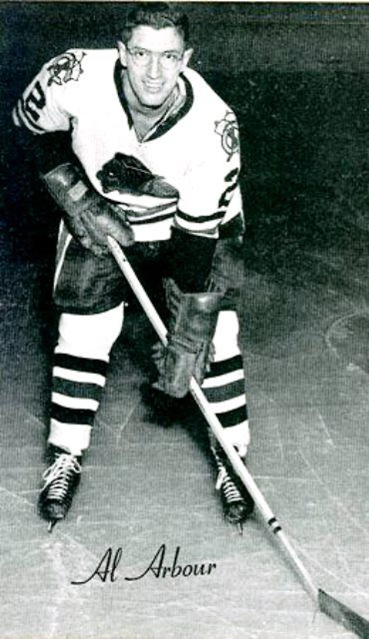 В первом же сезоне, с ходу, Эл выиграл вместе с "Ред Уингз" Кубок Стэнли. В некоторых источниках этот факт обходят. А зря. Да, Арбур не играл в плей-офф, но в регулярном чемпионате провёл 39 матчей, т.е. - больше половины (регулярка составляла 70 матчей). Более того - в то время регламент "на обладание Кубком" ещё не был суровым (суровым он стал в 1970-ом после "эффекта Болдырева" - почитайте о первом русском в НХЛ). На следующий сезон Арбур выпал из состава. В те времена в заявке на матч фигурировали лишь четыре защитника и он не смог подвинуть таких корифеев оборонительного цеха, как Ред Келли, Марсель Проново, Боб Голдам. С сезона 1956-57 Эл стал отвоёвывать себе место в составе, а на следующий год уже стал твёрдым игроком основы, но тут семья Норрисов сделала то, что делала часто. Они посчитали, что Арбур недостаточно хорош и обменяли его в "Чикаго" (не забываем, "Ред Уингз" были основными соперниками супер-династии "Хабс" и любое поражение переживалось болезненно, начинался поиск виновных, а при их определении шли карательные санкции). Если Норрисы за год до этого (лето 1957) не стали церемониться с самим Тедом Линдсеем и, в наказание за участие в создании Ассоциации игроков НХЛ (предтеча профсоюза) отправили его в направлении Чикаго, то что уж говорить о каком-то там очкарике. Эл уже прочно играл в очках. Он был, кстати говоря, последним игроком не только в НХЛ, но и в других известных профессиональных лихах (и квази-любительских, например, Высшая лига чемпионата СССР), кто играл в очках. В "Ястребах" Арбур пришёлся ко двору, составив с Доллардом Сен-Лораном вторую пару защитников. После триумфального сезона Эл был обменен в "Торонто". Но накатила длинная полоса травм и за "Мэйпл Ливз" он по сути так и не заиграл. Но я уже говорил, что жёсткие правила на право гравировки на Кубок ещё не наступили, и Эл Арбур зачтён, как обладатель Кубка Стэнли 1962-го и 1964-го годов, несмотря на минимальное количество игр (сезон 1962-63 он пропустил полностью).