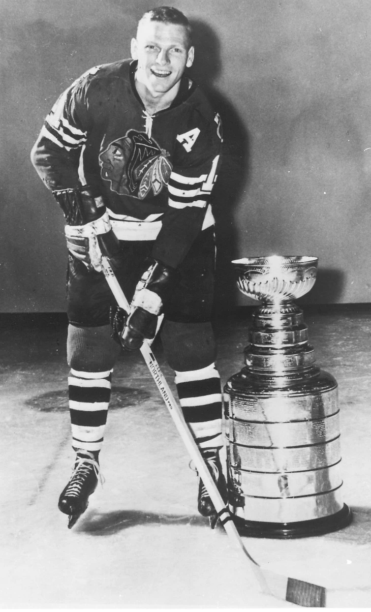 Среди портретов, которые висят в канадских "хабах" (слушайте, а может я всё-таки преувеличиваю канадскую страсть), наверняка есть место и для "Хабов" из супер-династии когда-либо существовавших в НХЛ. Династии второй половины 50-х с братьями Ришарами, Жаком Плантом, Дагом Харви, Дикки Муром и т.д и т.д.... Династии на столько мощной, что они могли себе позволить отказаться (буду говорить именно так - 15 тысяч долларов - не в счёт), например, от Эда Литценбергера, ставшего капитаном в чемпионском "Чикаго"-1961. Нечто подобное, да почти точь в точь, произошло с ещё одним лидером "Блэк Хоукс" 61-го года. Знакомьтесь, кто не был знаком -