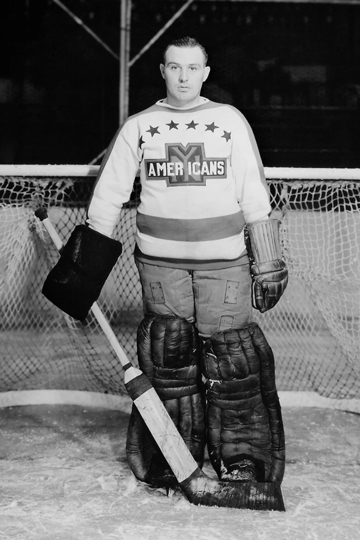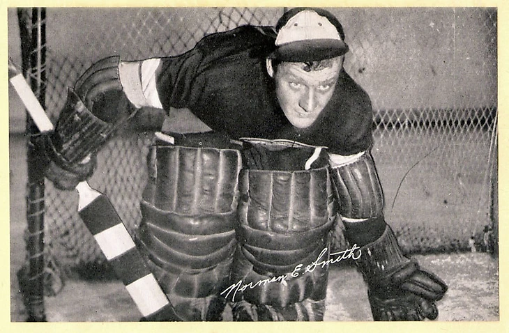 И так, мы с Вами отлично знаем, что хоккеисты склонны к травмам. Не имею статистики, поэтому не могу знать, как сейчас, но времена, когда Гамп Уорсли, в свободное от хоккея время, рубил уголёк на шахте (а Фил Эспозито, между прочим, трудился в прокатном цеху на сталелитейном производстве), вратари на получение травм были впереди остальной хоккейной братии. Тем не менее, повторяюсь, никто долгое время странным образом не озабочивался, или озабочивался совсем чуть-чуть, введением в состав вратарей - дублёров. Однако, про Мо Робертса (обратите, кстати, внимание на фото - он левша "всамделешный") мы можем найти такие сведения - он "надевал щитки" за Бостонскую спортивную ассоциацию, где "таймшерил" с Френчи Лакруа, которому, в свою очередь, довелось менять в воротах "Канадиенс" самого Жоржа Везину. Т.е., "Бостонская спортивная ассоциация" могла себе позволить двух вратарей, а НХЛ - нет. Ладно, дело не в этом.
