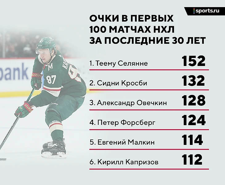 По очкам за этот же период времени Капризов вошел в топ-6 и стал первым игроком, набравшим более 110 баллов за первые 100 матчей с сезона-2007/08. Тогда это сделал Евгений Малкин.
