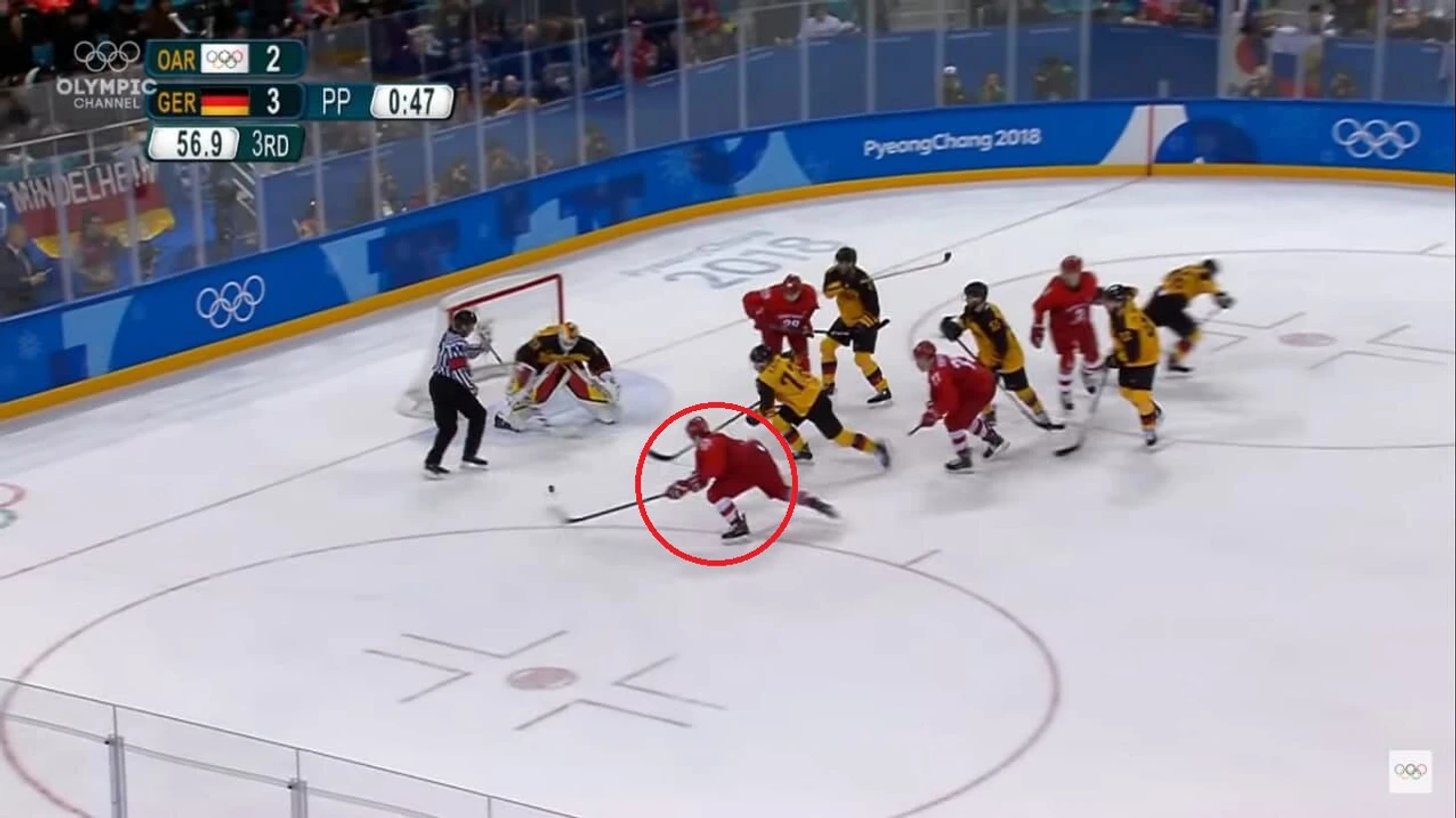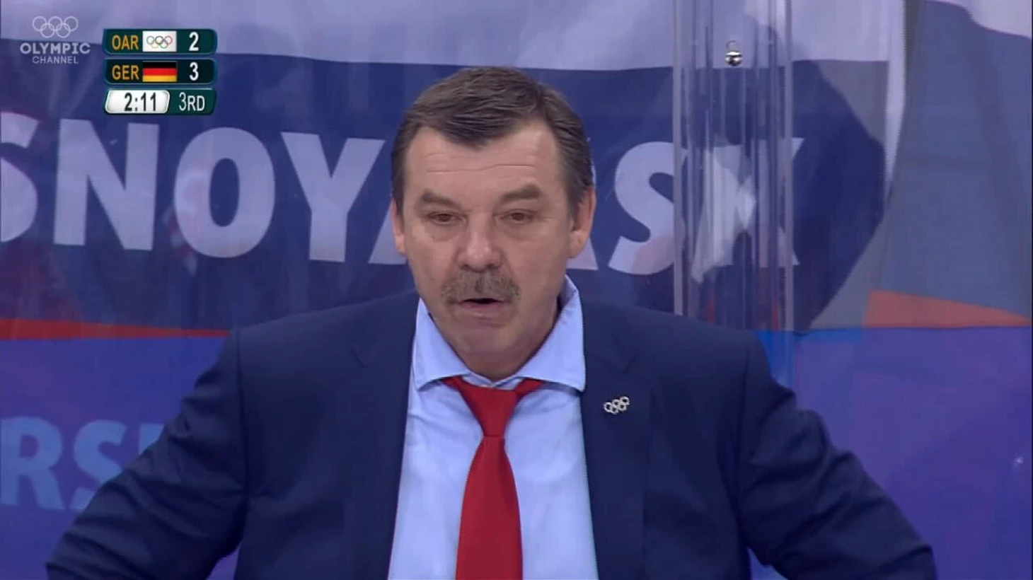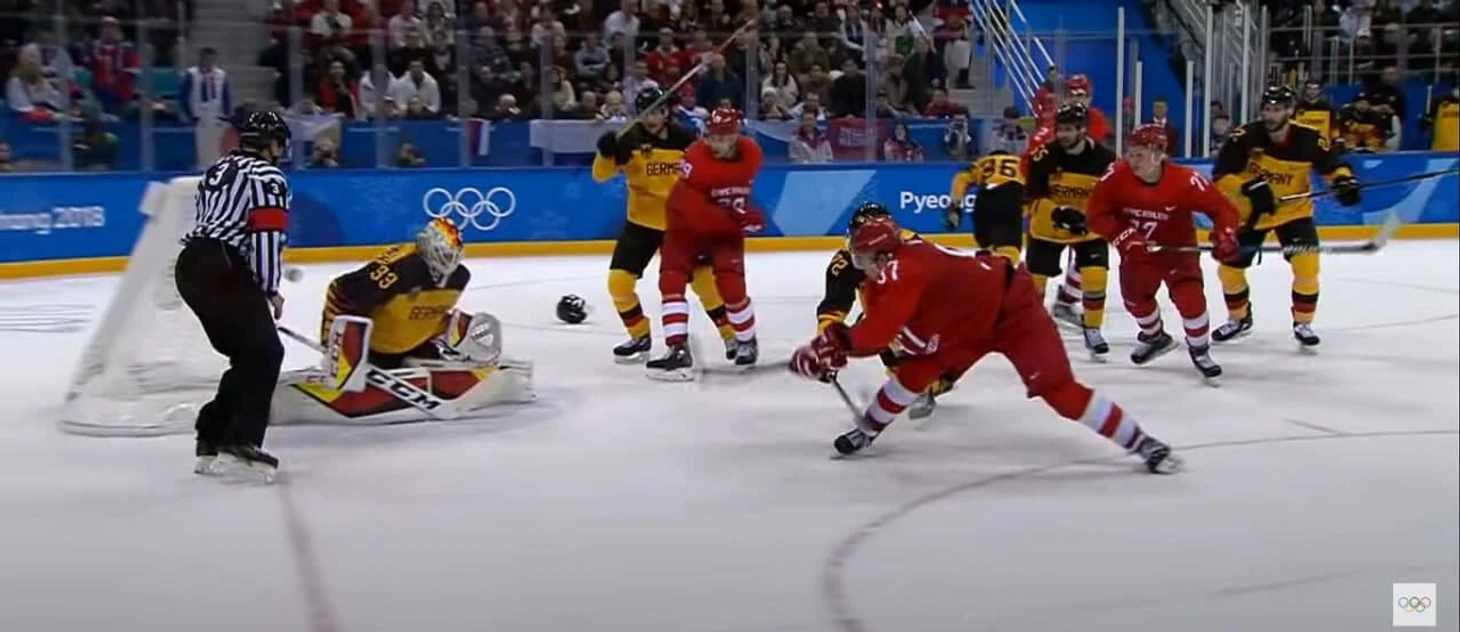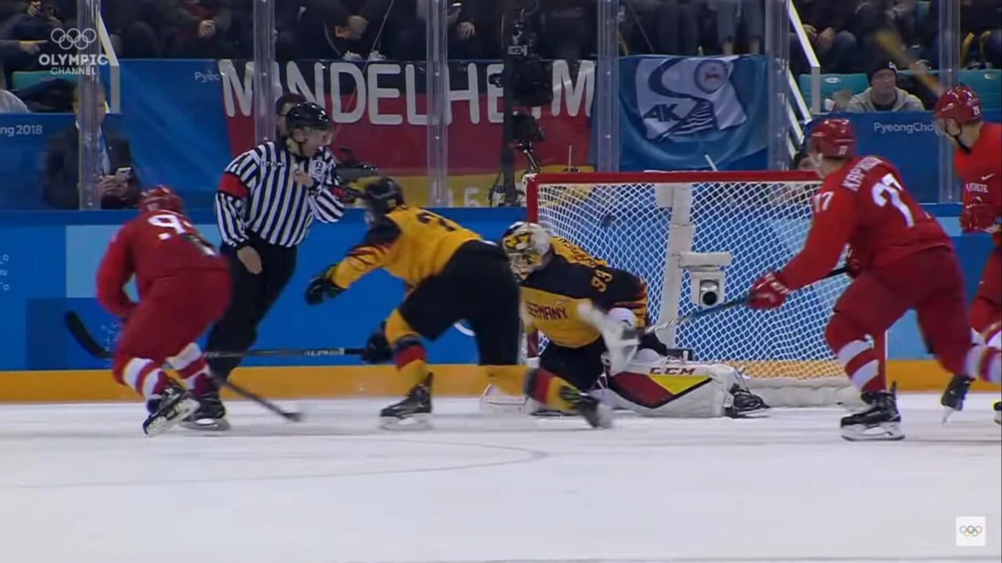 Ключевой момент финала Пхенчхана-2018: сборная Германии забивает за 3:16 до конца основного времени – и ведет 3:2. Через минуту проблем у России прибавляется: Сергея Калинина удаляют за подножку – остаемся вчетвером. И судя по выражению лица Олега Знарка, с ускорением жующего жвачку, совсем не так он рассчитывал встретить окончание третьего периода.