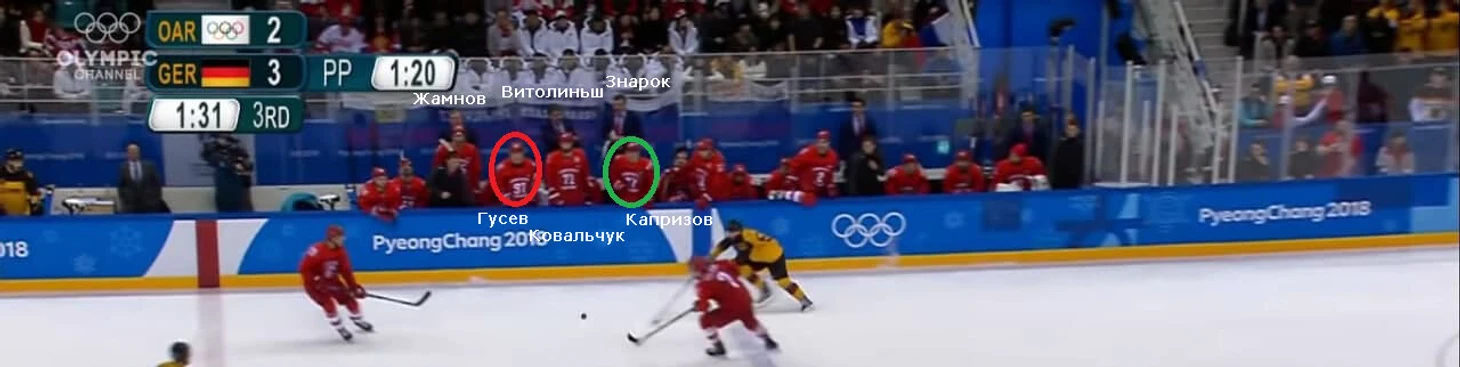 В меньшинстве вышли Андронов и Каблуков – и у них была задача просто выиграть вбрасывание и привезти шайбу туда. Это им сказали, они это сделали – и уже потом выпустили Гусева. И Каблук, если вы помните, он эту шайбу вырвал у немцев уже на их пятаке. То есть он ее отбросил – когда Гусь забивал с неудобной.