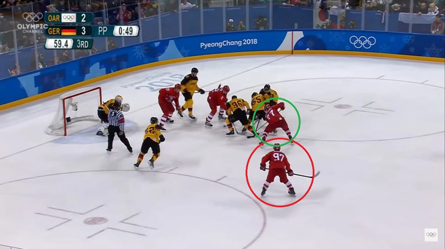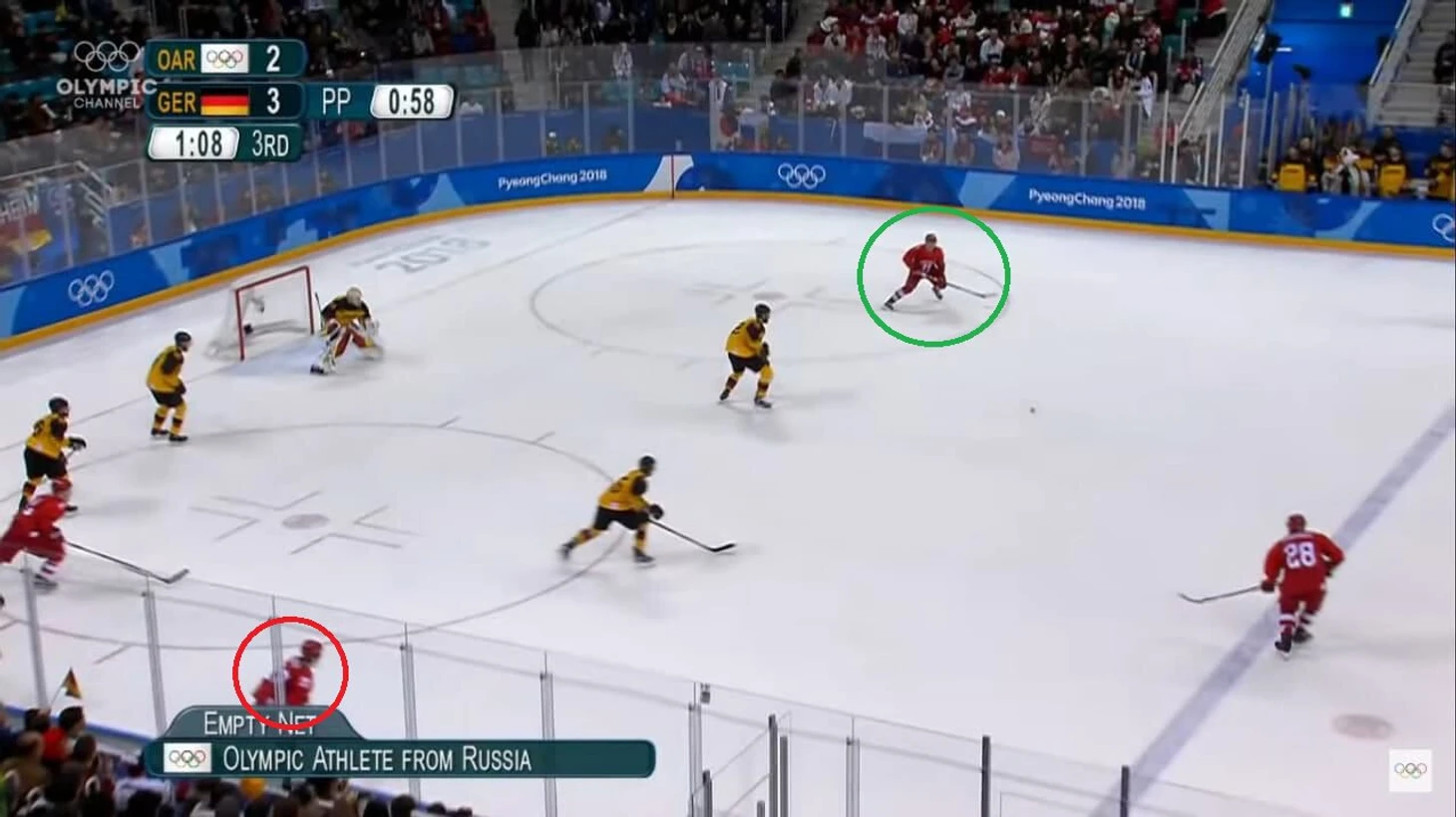 Никто не брал тайм-аут. На меньшинство у сборной России вышли Андронов (на вбрасывание), Дацюк и Гавриков с Войновым в защите. Они отоборонялись 36 секунд, вытолкали немцев из зоны – и на смену вышли Телегин, Каблуков, Зубарев и Зуб.