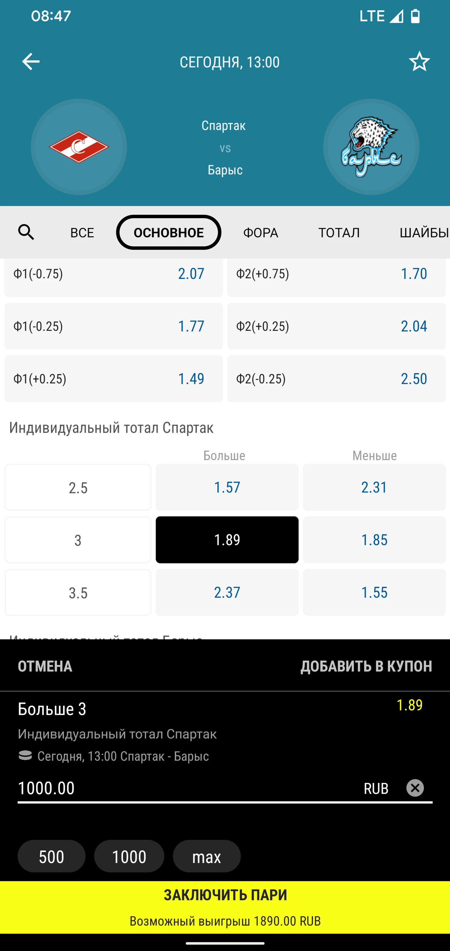 На мой взгляд Спартак посвежее и поактивнее будет сегодня , плюс показали настрой на атаку именно а не от обороны игру , плюс Барыс не могу сказать что может похвастать хорошими защитными действиями как команда . Сложив все это и посмотрев линию выбрал тотал больше Спартака по букмекеру париматч . Приличная вероятность возврата в этом случае , но гораздо безопаснее чем тотал больше 3,5 и чем победа просто в основном времени я думаю .