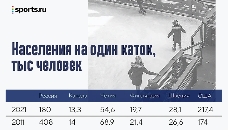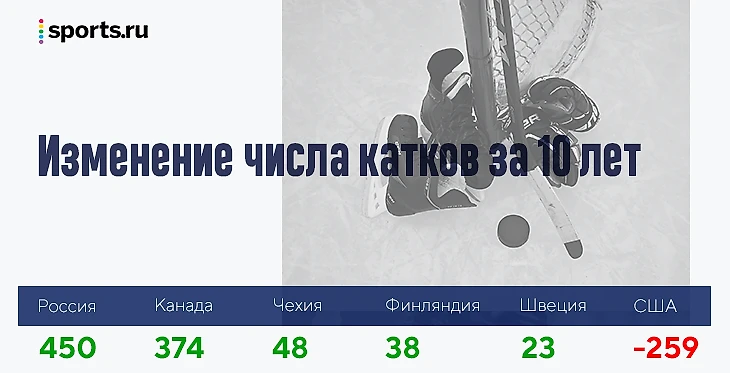 По странам второго хоккейного эшелона ситуация такая: в Германии (финалист ОИ-2018) количество катков за десять лет выросло со 175 до 218. В Дании с 23 до 27, в Словакии с 47 до 75, в Беларуси с 28 до 42, в Латвии с 17 до 24.