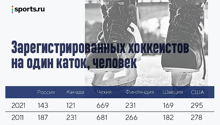 Но, понятно, что не всем 144 млн жителей России эти катки нужны. Смотрим, насколько хватает катков непосредственно для хоккеистов.