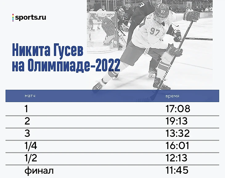 Гусева не выпустили в овертайме против шведов. После того, как его буллит и буллит Грицюка вывели Россию в финал, Никита и Арсений получили там по 10 минут. Грицюк цеплялся за каждую смену и создавал опасности (и полу-опасности) из воздуха, но в матче с финнами он сыграл меньше, чем в любом другом на турнире.