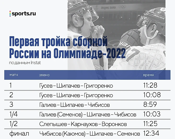 На первый матч Шипачев и Гусев вышли с Григоренко – ну то есть была идея собрать такое суперзвено (по меркам этой Олимпиады): Вадим и Никита режутся в пас, у Миши – божественный кистевой плюс тоже не самые деревянные руки в этой части планеты. В общем, интересно.