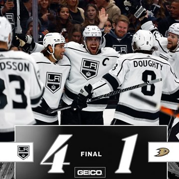 "Анахайм Дакс"-"Лос-Анджелес Кингз" 1:4.Адриан Кемпе набрал 3 очка (2+1),Анже Копитар набрал 2 очка (1+1),Джонатан Куик отразил 24 броска.