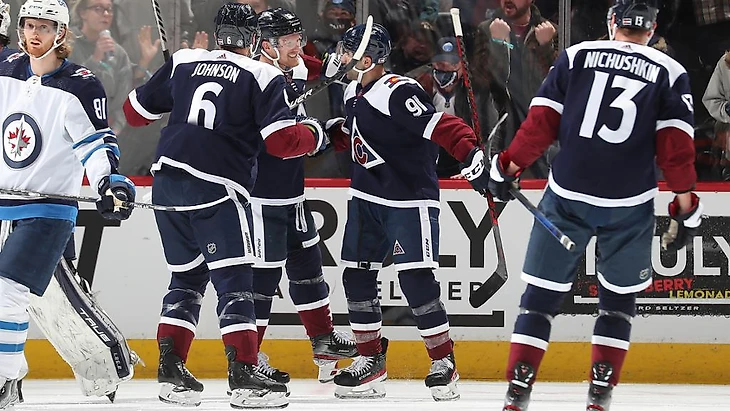 "Колорадо Эвеланш"-"Виннипег Джетс" 6:3.Хозяева в двух последних периодах забросили по 3 шайбы.Габриэль Ландеског забросил 3 шайбы,Микко Рантанен отдал 3 результативные передачи,Андре Бураковски набрал 2 очка (1+1),Натан МакКиннон забросил 2 шайбы,Валерий Ничушкин с Назимом Кадри,Дэвоном Тэйвзом и Кейлом Макаром отдали по 2 результативные передачи,Павел Францоуз отразил 26 бросков.У гостей Пьер-Люк Дюбуа отдал 2 результативные передачи,Евгений Свечников забросил одну шайбу.