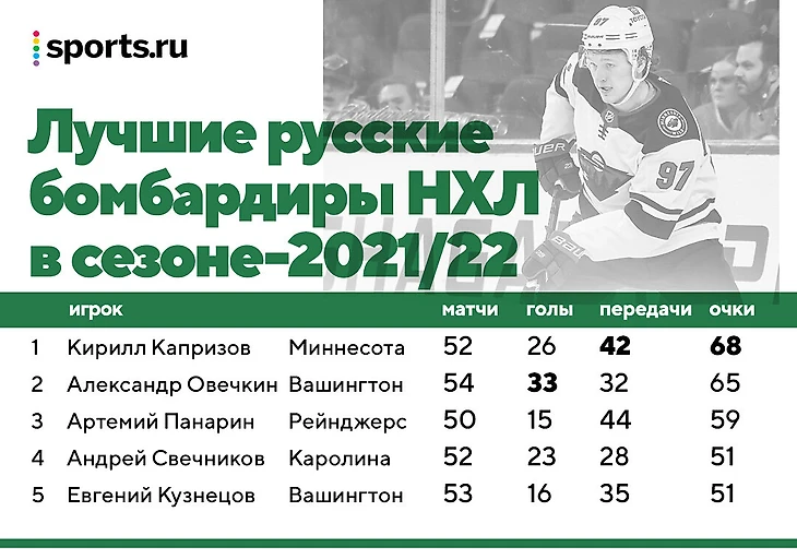 «Миннесота» уступила, но Капризов увеличил количество набранных очков в сезоне до 68 (26+42) за 56 матчей. Он главный русский бомбардир НХЛ прямо сейчас – Кирилл уже выходил на эту строчку, но теперь он оторвался от Овечкина сразу на 3 очка.