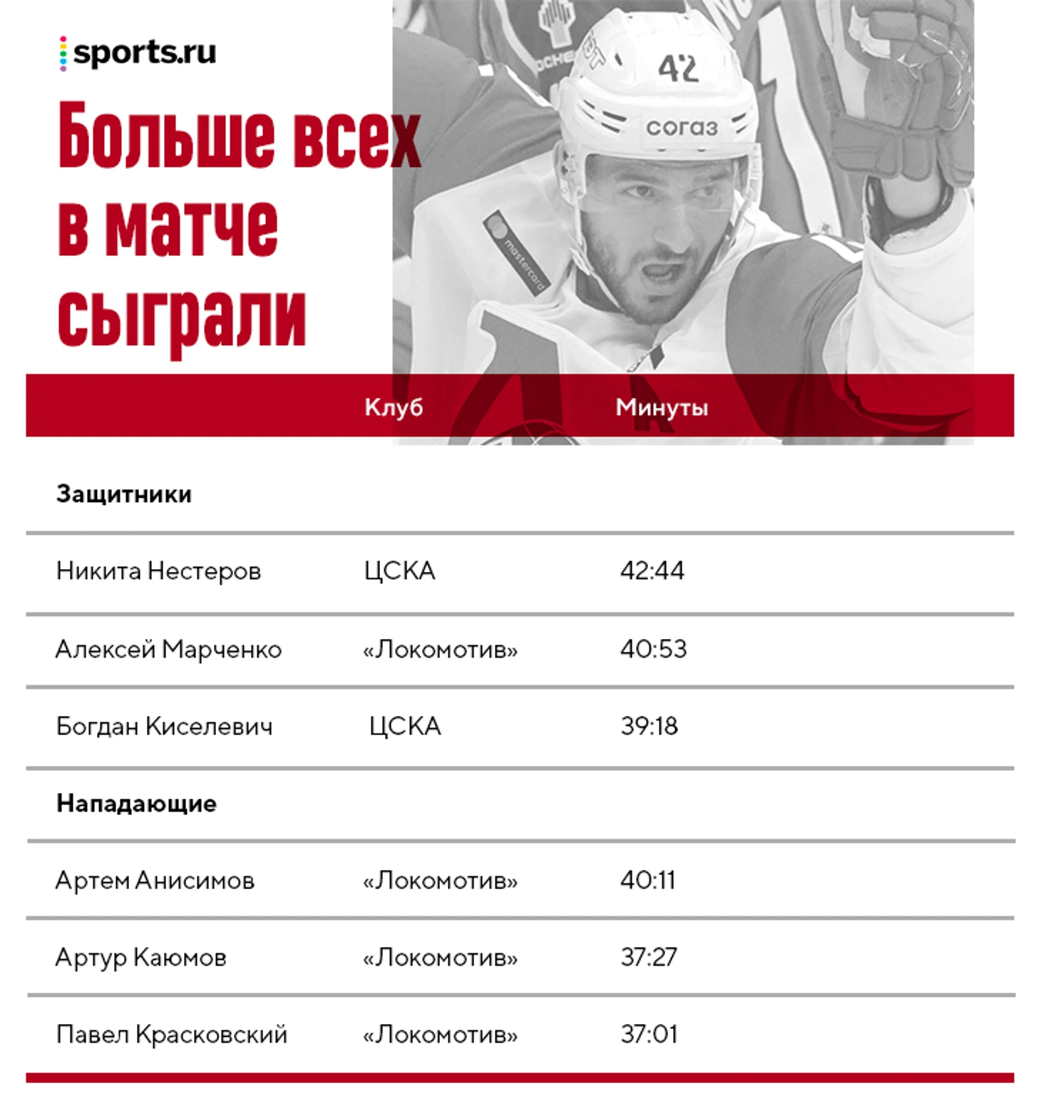 Игровое время хоккеистов просто поражает – сумасшедшие цифры. Кстати, больше всех в Ярославле – у защитника Алексея Марченко, чье удаление и стало роковым. Возможно, тренерам «Локо» стоило пореже выпускать его. При этом больше всех смен за вечер провел нападающий Павел Красковский – 55.
