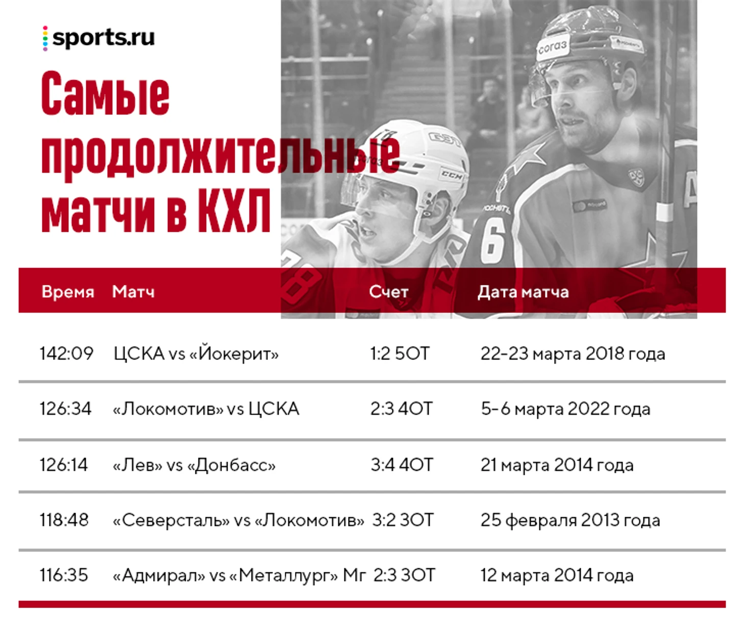 🔥126 минут на льду – «Локомотив» и ЦСКА бодались четыре овертайма! Это второй по длительности матч в истории КХЛ