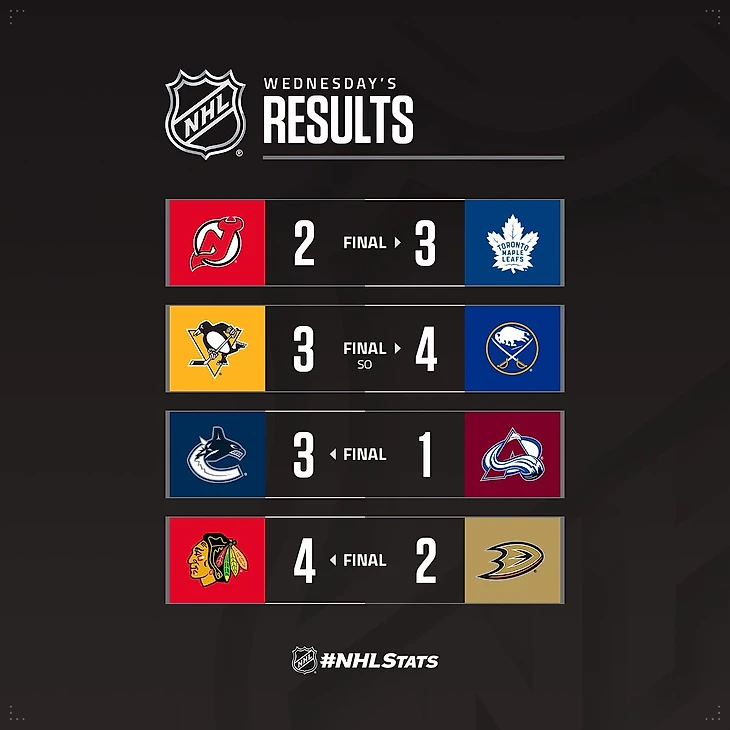 Баффало вновь обыгрывает Питтсбург на домашнем льду, а Ванкувер прервал победную серию Колорадо