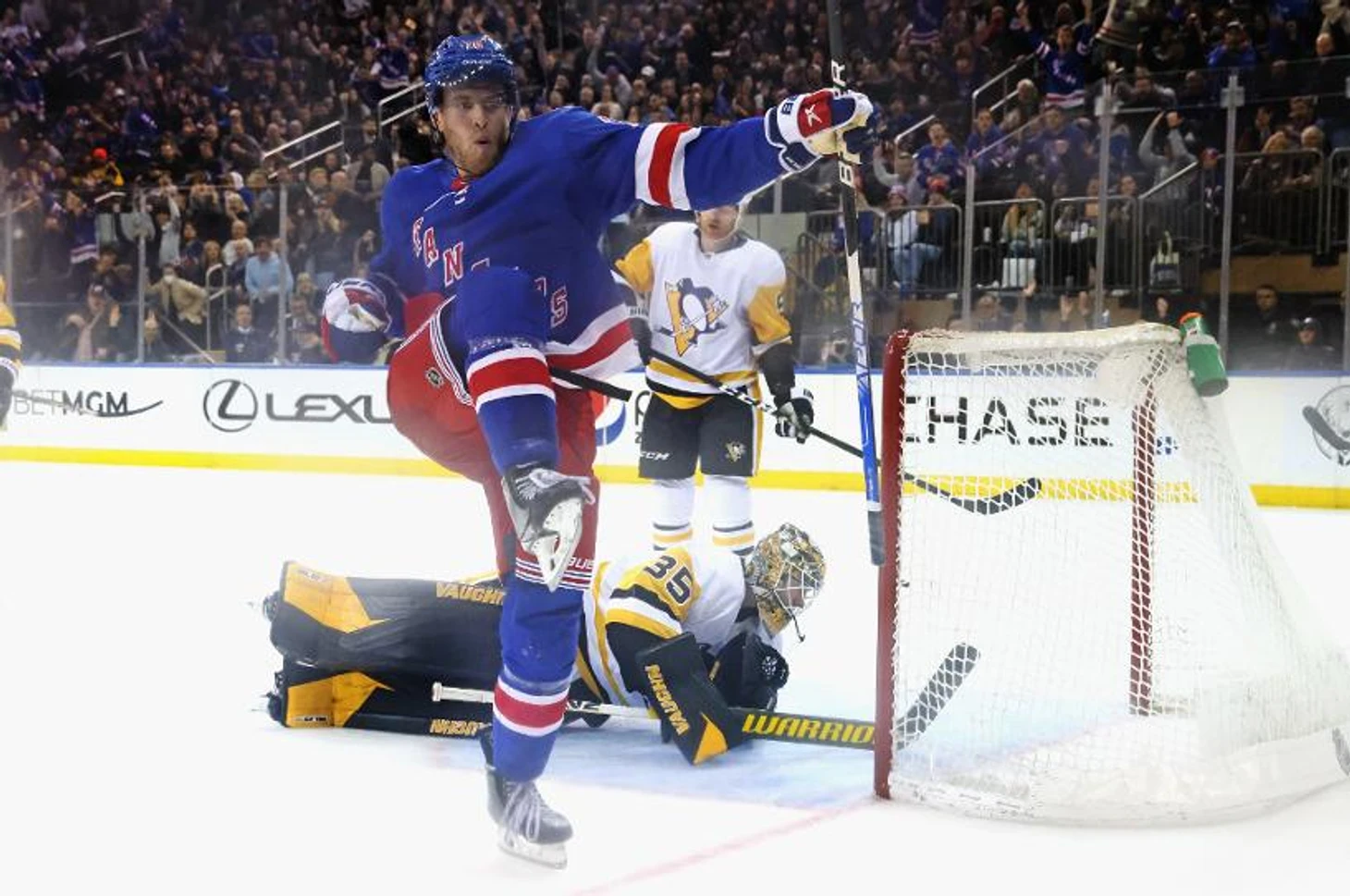 "Нью-Йорк Рейнджерс"-"Питтсбург Пингвинз" 5:1.Хозяева в первом периоде забросили 3 шайбы.Крис Крайдер набрал 3 очка (2+1),Мика Зибанежад отдал 3 результативные передачи,Артемий Панарин отдал результативную передачу,Игорь Шестёркин отразил 20 бросков.