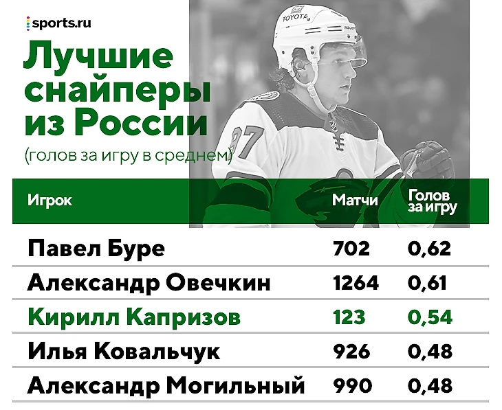 Прямо сейчас в среднем за игру Капризов забивает больше Ковальчука и Могильного – скорее всего, в дальнейшем этот показатель будет меняться, но заявка очень серьезная. Да, в гонку за Гретцки Кирилл не ворвется, но вполне сможет дать ответ на вопрос: кто будет забивать пачками, когда уйдет Овечкин?