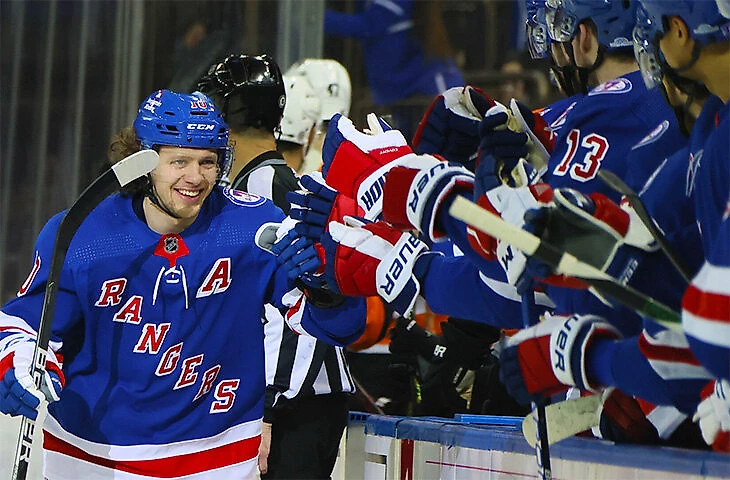 При отсутствии потенциального юбиляра функции главного по цифрам на себя взял Артемий Панарин – он был в составе «Рейнджерс», а потому 500-й матч в лиге от него никуда бы не делся. Нападающий отметил это событие – не особо масштабно, всего одной шайбой, но красиво.