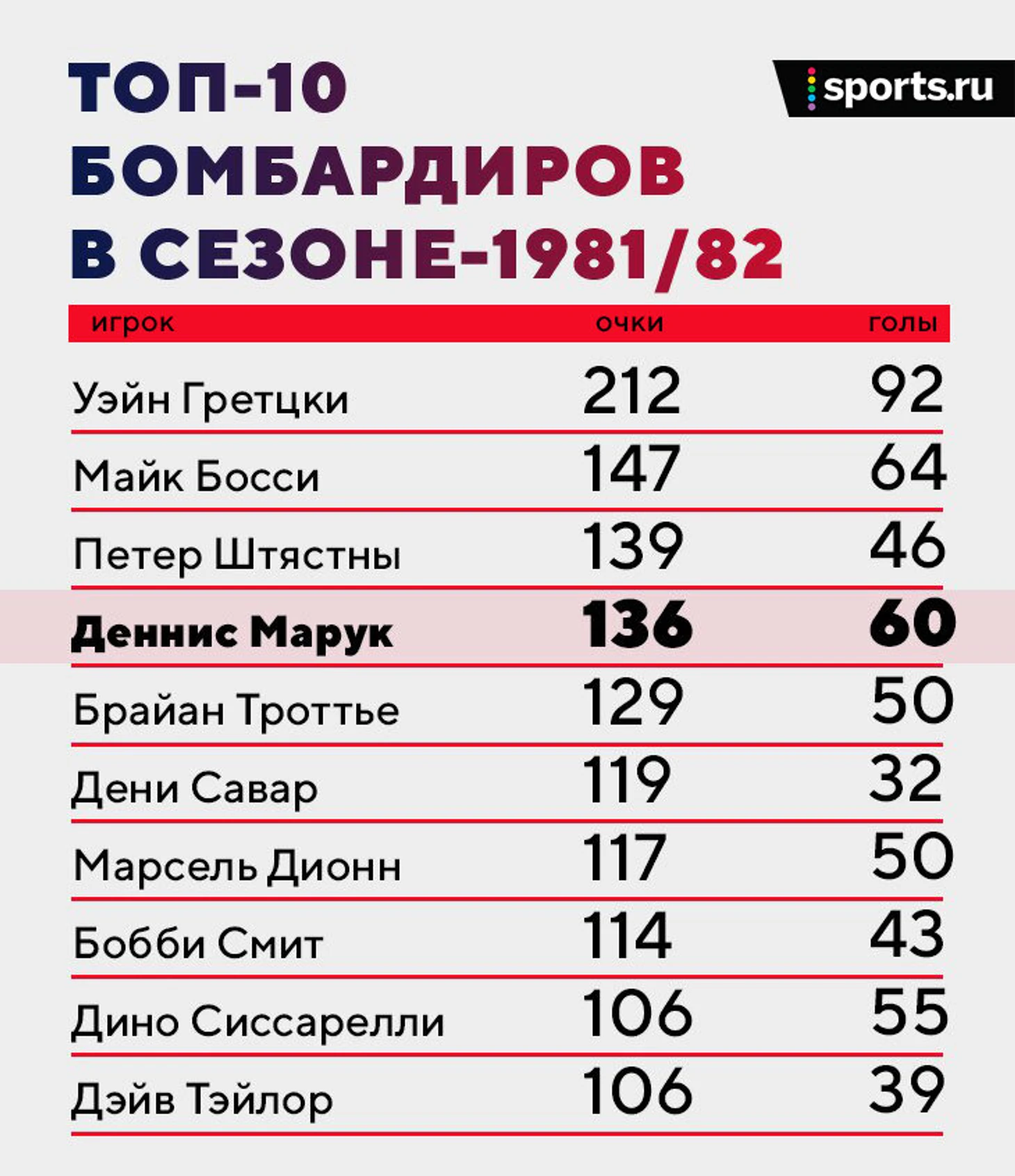 Да, хоккей 80-х был настолько суров, что даже лучший снайпер в истории человечества не смог перебить результат Денниса Марука.