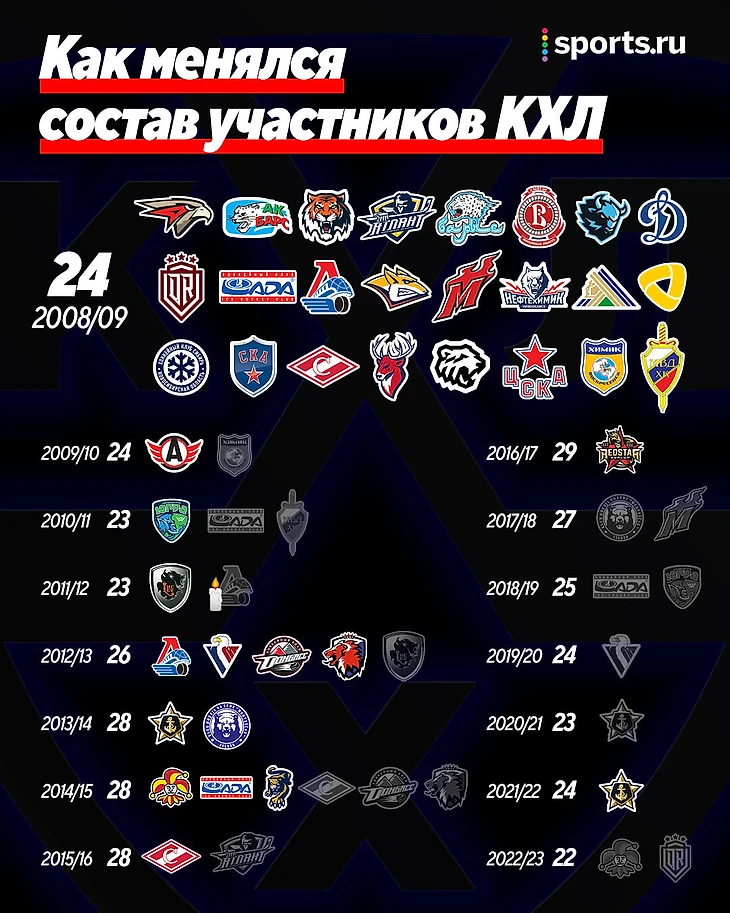 По этой картинке очевиден один из главных недостатков КХЛ – лиге не хватает стабильности. За 15 лет она не провела и двух сезонов подряд одним составом. Поэтому уже давно никто не удивляется потерям среди участников – привыкли. За все время существования лиги было только три (!) сезона, когда никто из клубов не уходил. И очень вероятно, что через год это число останется прежним.