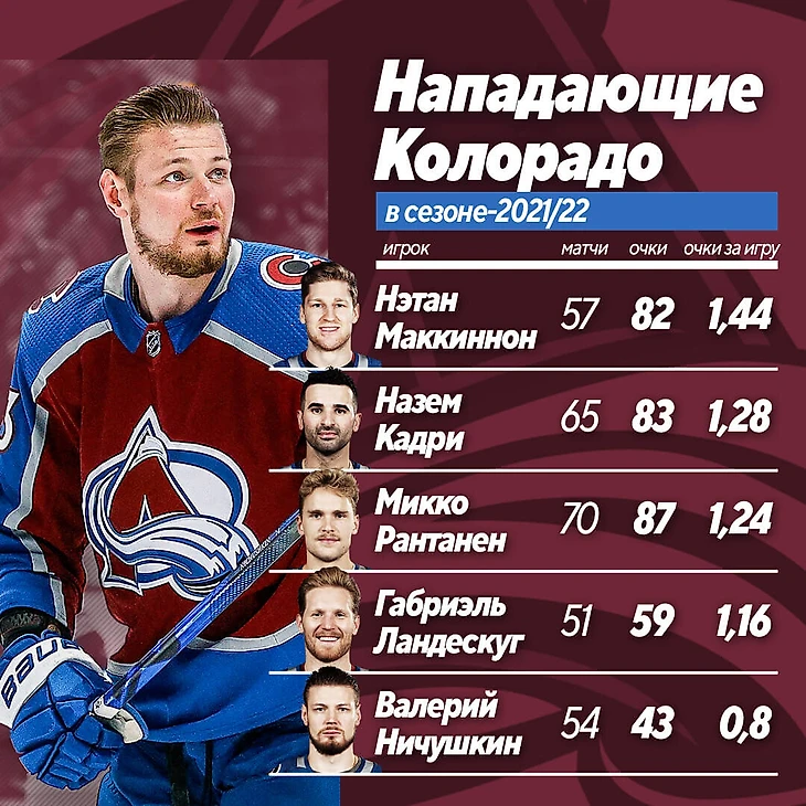 Ничушкин проводит лучший сезон в карьере. Его роль в «Колорадо» – сразу за лидерами