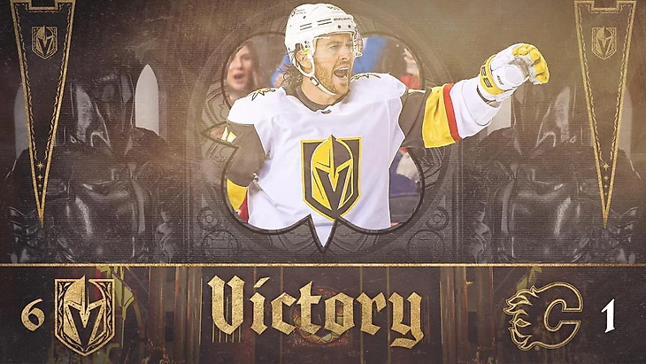 "Калгари Флэймз"-"Вегас Голден Найтс" 1:6.Гости во втором периоде забросили 4 шайбы.Вилья Карлссон и Джонатан Маршесо набрали по 3 очка (1+2),Николя Руа с Майклом Амадио и Евгением Дадоновым набрали по 2 очка (1+1),Логан Томпсон отразил 35 бросков.