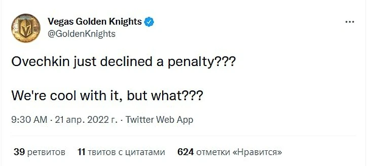 Не все смогли поверить в то, что Александр отказался от большинства для «Вашингтона». Даже соцсети «Вегаса»: