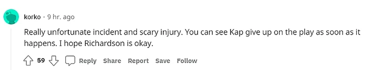 «Действительно неприятный момент и жуткая травма. Вы видите как Кэп сразу остановился, как только это случилось. Надеюсь, с Ричардсоном все в порядке».