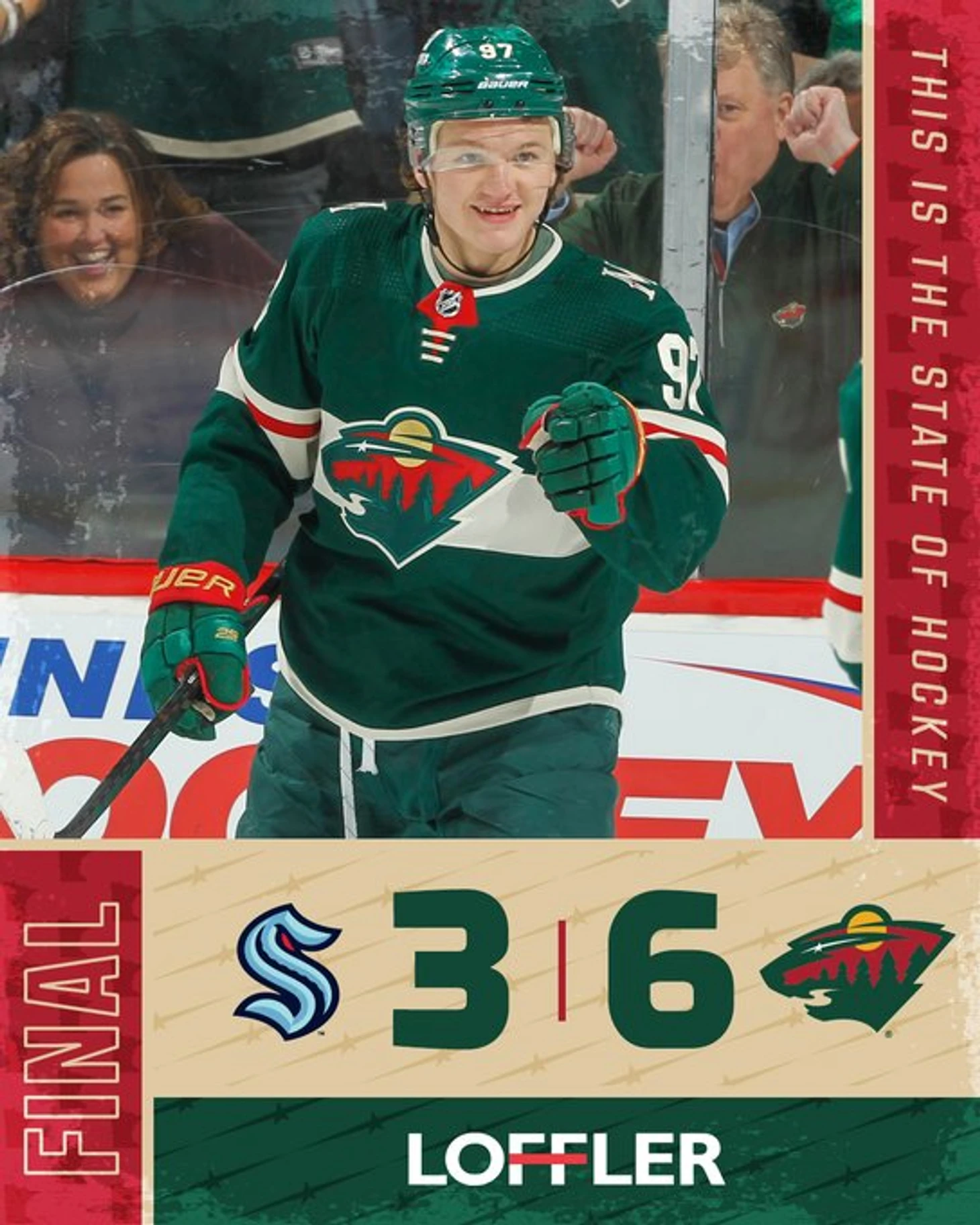 "Миннесота Уайлд"-"Сиэтл Кракен" 6:3.Хозяева во втором периоде забросили 5 шайб.Кевин Фиала отдал 5 результативных передач,Кирилл Капризов набрал 4 очка (1+3),Йоэль Эрикссон набрал 3 очка (2+1),Марк-Андре Флери отразил 25 бросков.У гостей Джаред МакКанн отдал 2 результативные передачи.Во втором периоде Брендон Дюхейм подрался с Уиллом Боргеном."Дикари" выиграли 4 игру подряд.