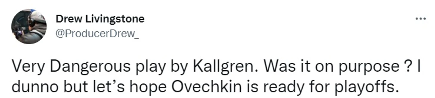 «Очень опасная игра Кельгрена. Это было специально? Не знаю, но будем надеяться, что Овечкин будет готов к плей-офф»
