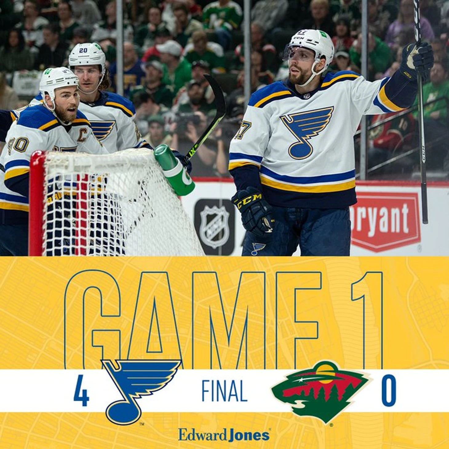 "Миннесота Уайлд"-"Сент-Луис Блюз" 0:4.Давид Перрон набрал 4 очка (3+1),Тори Круг отдал 3 результативные передачи,Райан О'Райлли набрал 2 очка (1+1),Вилле Хуссо отразил 37 бросков и сыграл первый сухой матч в плей-офф."Блюзмены" повели в серии 1-0.